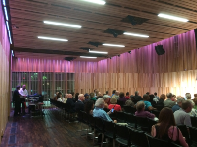 Debby and Bruce  Bruce chats with Debby Evans who Bill wrote a song for - Waltz for Debby Audience in New Orleans  Audience gets ready to see the film at the New Orleans Jazz and Heritage Foundation More New Orleans Jazz Fans  Bruce and his wife with two fans at the New Orleans showing Dinner with Bill Zavatsky  Bruce with his wife and Bill Zavatsky who provided great insights throughout the film